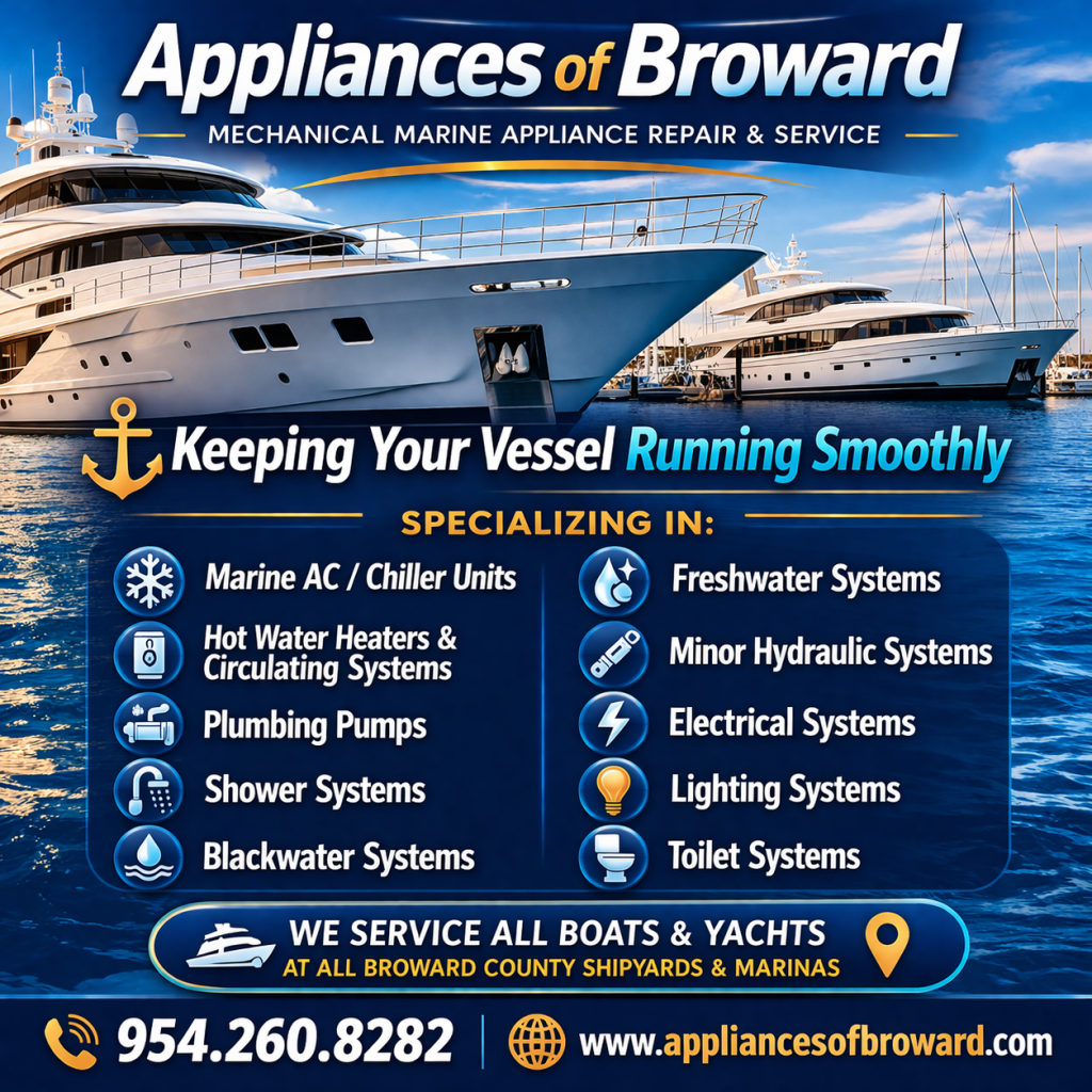Call Appliances of Broward Today for All Your Marine Mechanical Appliance Repair Needs