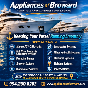 Appliances of broward can service all of your Mechanical Marine Appliance Repair & Mechanical Marine Service needs at ALL Broward County shipyards & marinas. CALL TODAY!